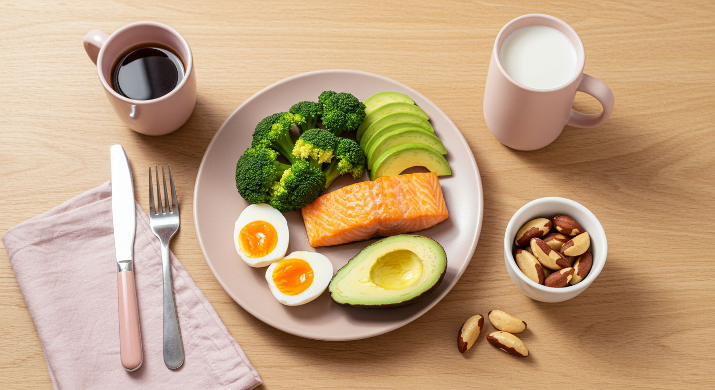 | 아침 | 계란 프라이 + 통밀토스트 + 아보카도 슬라이스 | 단백질과 건강한 지방으로 호르몬 밸런스 유지 |