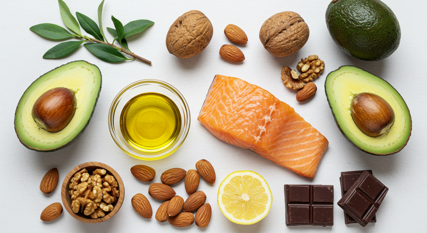 태그: 다이어트 지방, 건강한 지방 음식, 체중 감량 식단, 저탄고지, 지방 섭취 요령, 연어 효능, 아보카도 칼로리, 다크초콜릿 다이어트, 올리브오일 건강, 견과류 간식